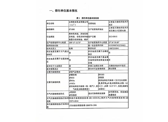 云南歐亞乳業(yè)有限公司(二廠)信息公開
